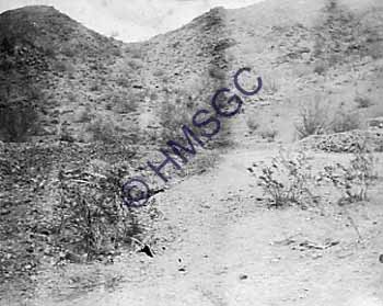 | Accession Number:1977-5.49 Accession Date: Condition:poor Location:Outside MO, box 1, folder 27 Keywords:landscape, White Tank Mountains, Maricopa, Arizona, scenary Area of Origin:Maricopa County, Arizona Period:ca. 1900 Category:documentary artifact Object:print, photographic Maker: Description/History:A black and white photo of "view looking south of Falcon and Blackhawk claims in White-tank Mts., Maricopa County Arizona. Falcon shaft at extreme right." News-Leader Photo Information: |