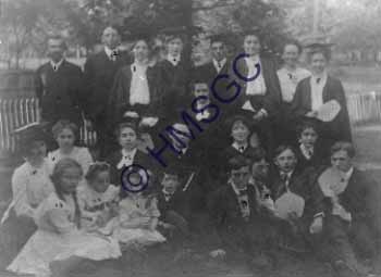 |  Accession Number:1989-210-6  Accession Date:  Condition:fair  Location:Archives, Hall Coll., Box 1, Folder 6  Keywords:men, women, children, Drury College, graduation, 1- Professor Finkel, 2- George Sam Will, 3- Effie Sterrett, 4- Mamie Brockman, 5- Ed Hall (father of donor), 6- Olive Bear, 7- Mrs. Finkel, 8- Maud Little, 9- Ellen Craig, 10- ?, 11- ?, 12- Grace Williams  Area of Origin:Springfield MO  Period:ca 1900  Category:Documentary Artifact  Object:Print, photographic  Maker:uk  Description/History:5-1/4" x 6-1/4" (including mount) black and white photoprint of graduation group of 23 men, women and children at Drury College. (con't) 13- Charlie Orr, 14- Alice Bennett, 15- Vera Brereton, 16- Emery Lowe, 17- Grant Johnson, 18- Finkel's son, 19- ?, 20- Finkel's daughter, 21- ?, 22- ?, 23- ?.  News-Leader Photo Information: |