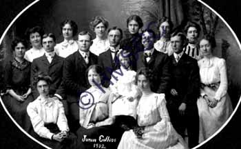 |  Accession Number:1989-210-8  Accession Date:  Condition:fair  Location:Archives, Hall Coll., Box 1, Folder 8  Keywords:men, women, Drury College Junior Class, 1- Tot Page (?), 2- Bertha Booth, 3- Mamie Brockman, 4- Vera Brereton, 5- Effie Sterrett, 6- Grace Williams, 7- Maude Little, 8- Emery Lowe, 9- George Sam Will, 10- Grant Johnson, 11- Charlie Orr,  Area of Origin: Springfield MO  Period:1902  Category:Documentary Artifact  Object:Print, photographic  Maker:Morgan  Description/History:10" x 12" (including mount) black and white photoprint (oval) of formal photograph of Junior Class, Drury College, 17 men and women in dress clothes.  (con't)...12- Ed Hall (father of donor), 13- Nina Dorman, 14- Ellen Craig, 15- Alice Bennett, 16- Professor Finkel's daughter, 17- Evelyn Mucke  News-Leader Photo Information: |