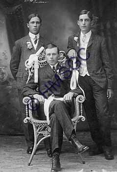 | Accession Number:1990-42 Accession Date: Condition:fair Location:Hoover, box 3, folder 50 Keywords:men, people, fashion, Green, Donaldson, Hogan, graduation, diploma Area of Origin:West Plains, MO Period:1904 Category:documentary artifact Object:print, photographic Maker:uk Description/History:A black and white photo of Will Green (sitting) Tom Donaldson (on Will's left), Ed Hogan (right). The three boys in High School graduating class of 1904. News-Leader Photo Information: |