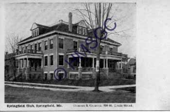 | Accession Number:1991-16-18 Accession Date: Condition:fair Location:Archives, Hall Coll., Box 2, Folder 9 Keywords:streets, homes, clubs, Duncan & Greaves Area of Origin:Springfield, MO Period:ca 1900 Category:Documentary Artifact Object:Postcard Maker: Duncan & Greaves, 310 St. Louis St. Description/History:Black and white postcard photo of the Springfield Club, on the SW corner of Jefferson Ave. and Walnut St. Later this building became the headquarters of the Chamber of Commerce and KTTS radio and television. News-Leader Photo Information: |