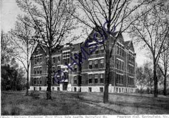 Accession Number:1991-16-28 Accession Date: Condition:fair Location:Archives, Hall Coll., Box 2, Folder 11 Keywords: Pearson Hall, Drury College Area of Origin:Springfield, MO Period:ca 1910 Category:Documentary Artifact Object:Postcard Maker:Made in Germany, sold by Fairbanks Book Store Description/History:Black and white postcard photo, possibly hand colored, of Pearson Hall, Drury College, on Benton Ave. News-Leader Photo Information: