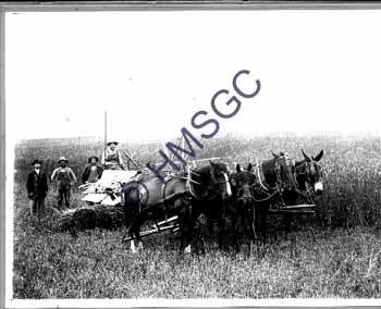 | Accession Number:1992-107 Accession Date: Condition:fair Location: archives, farming, box 1, folder 32 Keywords:grain harvest crew; farming, threshing machine, horses, Mankato, MN Area of Origin:Mankato, MN Period:c. 1900 Category:documentary artifact Object:print, photographic Maker:unknown Description/History: farming crew with four-horse drawn threshing machine in field.Nearly illegible writing on back with Klinbeil and Mehlhouse names, Mankato, MN. News-Leader Photo Information: |