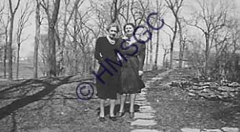 Accession Number:1992-215.149 Accession Date: Condition:good Location:Fulbright, box 1, folder 148 Keywords:Fulbright, Weaver, Bissett, Hoblit, women Area of Origin: Period:3/17/1940 Category:documentary artifact Object:print, photographic Maker: Description/History:A black and white photo of Marion Bissett Hoblit and another woman standing outside on a stone path. News-Leader Photo Information: