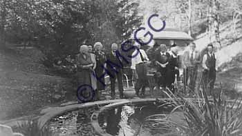 Accession Number:1992-215.187 Accession Date: Condition:good Location:Fulbright, box 1, folder 186 Keywords:Fulbright, Bissett, Weaver, Hoblit Area of Origin: Period:ca. 1940 Category:documentary artifact Object:print, photographic Maker: Description/History:A black and white photo of Emma, Harry and Marion Bissett (left) with a group of people outside. News-Leader Photo Information: