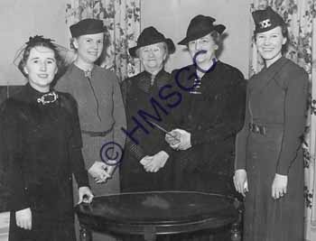 Accession Number:1992-215.47 Accession Date: Condition:good Location:Fulbright, box 1, folder 46 Keywords:Fulbright, Weaver, Bissett, women Area of Origin: Period:ca. 1940 Category:documentary artifact Object:print, photographic Maker: Description/History:A black and white photo of Emma (Weaver) Bissett (center) and four other women. News-Leader Photo Information: