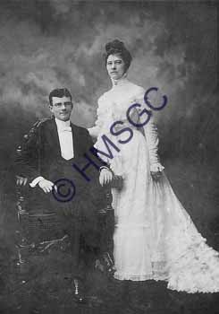Accession Number:1992-215.54 Accession Date: Condition:good Location:Fulbright, box 1, folder 53 Keywords:Fulbright, Weaver, Bissett, wedding dress, Ferguson, marriage Area of Origin:Springfield, MO Period:ca. 1900 Category:documentary artifact Object:print, photographic Maker:Ferguson Description/History:A black and white photo of Emma Weaver and Harry L. Bissett's wedding portrait. News-Leader Photo Information: