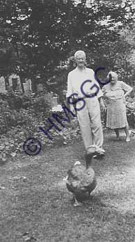 Accession Number:1992-215.63 Accession Date: Condition:good Location:Fulbright, box 1, folder 62 Keywords:Fulbright, Weaver, Bissett, geese, goose, duck Area of Origin: Period:ca. 1940 Category:documentary artifact Object:print, photographic Maker: Description/History:A black and white photo of Emma and Harry Bissett walking after a goose. News-Leader Photo Information: