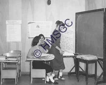 Accession Number:1992-232.1209 Accession Date: Condition:good Location:Springfield Public Schools, box 3, folder 228 Keywords:public schools, education, English, class, women, TV, KTTS Area of Origin:Springfield, MO Period:ca. 1955 Category:documentary artifact Object:print, photographic Maker:McGuire Description/History:A photo of three girls in English class. Television classroom. News-Leader Photo Information: