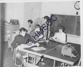 Accession Number:1992-232.1803 Accession Date: Condition:good Location:Springfield Public Schools, B5, F70 Keywords:Springfield Public Schools, education, students, newspaper, journalism. Area of Origin:Springfield, MO Period:ca. 1950 Category:documentary artifact Object:print, photographic Maker:Taylor Publishing Co. Description/History:A black and white photo of several students reading and working on the school newspaper. News-Leader Photo Information: