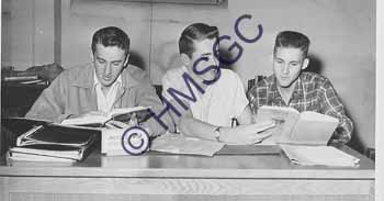 Accession Number:1992-232.1804 Accession Date: Condition:good Location:Springfield Public Schools, B5, F70 Keywords:Springfield Public Schools, education, students, school newspaper, journalism. Area of Origin:Springfield, MO Period:ca. 1950 Category:documentary artifact Object:print, photographic Maker:unknown Description/History:A black and white photo of three male students who work for the school newspaper. News-Leader Photo Information:
