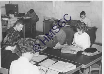 | Accession Number:1992-232.1827 Accession Date: Condition:good Location:Springfield Public Schools, B5, F74 Keywords:Springfield Public Schools, education, students, journalism, Central High School. Area of Origin:Springfield, MO Period:ca. 1960 Category:documentary artifact Object:print, photographic Maker:Taylor Publishing Co. Description/History:A black and white photo of five journalism students working at Central High School. Printed by Taylor Pubishing Co.--Job number 04415. News-Leader Photo Information: |
