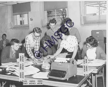 | Accession Number:1992-232.1831 Accession Date: Condition:good Location:Springfield Public Schools, B5, F75 Keywords:Springfield Public Schools, education, students, yearbook staff, Central High School. Area of Origin:Springfield, MO Period:ca. 1960 Category:documentary artifact Object:print, photographic Maker:Taylor Publishing Co. Description/History:A black and white photo of 8 students working on the yearbook for Central High School. News-Leader Photo Information: |