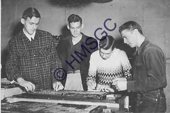 Accession Number:1992-232.1842 Accession Date: Condition:good Location:Springfield Public Schools, B5, F77 Keywords:Springfield Public Schools, education, students, circuit board. Area of Origin:unknown Period:ca. 1960 Category:documentary artifact Object:print, photographic Maker:unknown Description/History:A black and white photo of four male high-school students working on a circuit board. News-Leader Photo Information: