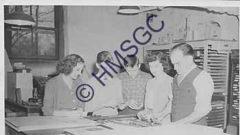 | Accession Number:1992-232.1853 Accession Date: Condition:good Location:Springfield Public Schools, B5, F80 Keywords:Springfield Public Schools, education, students, journalism. Area of Origin:unknown Period:ca. 1950 Category:documentary artifact Object:print, photographic Maker:unknown Description/History:A black and white photo of two male and two female journalism students standing next to a man as they work on the school newspaper. News-Leader Photo Information: |