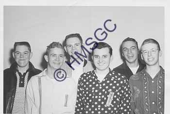 | Accession Number:1992-232.1858 Accession Date: Condition:good Location:Springfield Public Schools, B5, F81 Keywords:Springfield Public Schools, education, students, "Beat Lebanon." Area of Origin:unknown Period:ca. 1955 Category:documentary artifact Object:print, photographic Maker:unknown Description/History:A black and white photo of six male high-school students. One student is wearing a ribbon that says, "Beat Lebanon", indicating they may have been at a school sporting event. News-Leader Photo Information: |