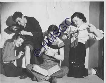 Accession Number:1992-232.1859 Accession Date: Condition:good Location:Springfield Public Schools, B5, F81 Keywords:Springfield Public Schools, education, students, school play. Area of Origin:unknown Period:ca. 1955 Category:documentary artifact Object:print, photographic Maker:unknown Description/History:A black and white photo of two male and two female students acting in a play. News-Leader Photo Information: