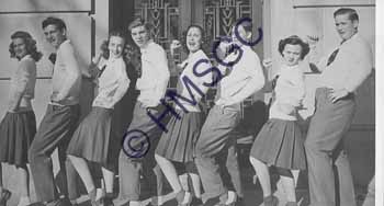 | Accession Number:1992-232.1890 Accession Date: Condition:good Location:Springfield Public Schools, B5, F89 Keywords:Springfield Public schools, education, students, pep squad. Area of Origin:Springfield, MO Period:ca. 1945 Category:documentary artifact Object:print, photographic Maker:unknown Description/History:A black and white photo of four female and four male members of the pep squad performing in front of their school building. News-Leader Photo Information: |