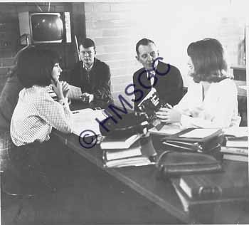 Accession Number:1992-232.1899 Accession Date: Condition:good Location:Springfield Public Schools, B5, F92 Keywords:Springfield Public Schools, education, students, Central High School, College Day. Area of Origin:Springfield, MO Period:unknown Category:documentary artifact Object:print, photographic Maker:unknown Description/History:A black and white photo of two males and three females on College Day at Central High School. News-Leader Photo Information: