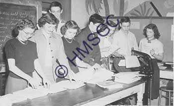 | Accession Number:1992-232.1902 Accession Date: Condition:fair Location:Springfield Public Schools, B5, F93 Keywords:Springfield Public Schools, education, students, Central High School. Area of Origin:unknown Period:ca. 1950 Category:documentary artifact Object:print, photographic Maker:unknown Description/History:A black and white photograph of several students working on putting together booklets for a class at Central High School. News-Leader Photo Information: |