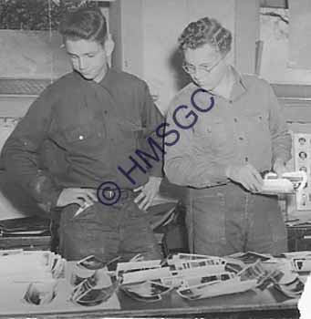 Description/History:A black and white photo of two male Central High School journalism students looking through photographs for the school yearbook, Resume.