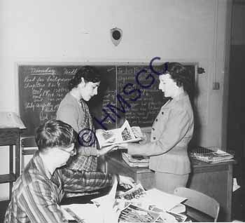 Accession Number:1992-232.1913 Accession Date: Condition:good Location:Springfield Public Schools, B5, F95 Keywords:Springfield Public Schools, education, Central High School, journalism. Area of Origin:Springfield, MO Period:ca. 1950 Category:documentary artifact Object:print, photographic Maker:unknown Description/History:A black and white photo of two journalism students and their teacher. News-Leader Photo Information: