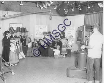 Accession Number:1992-232.1928 Accession Date: Condition:good Location:Springfield Public Schools, B5, F103 Keywords:Springfield Public Schools, education, students, Television classroom, KTTS-TV. Area of Origin:unknown Period:ca. 1957 Category:documentary artifact Object:print, photographic Maker:unknown Description/History:A black and white photo of several elementary students performing a play for KTTS-TV, Televison Classroom. News-Leader Photo Information: