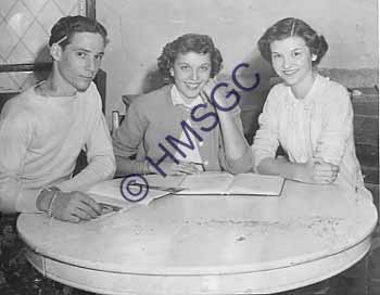Accession Number:1992-232.1956 Accession Date: Condition:fair Location:Springfield Public Schools, B5, F118 Keywords:Springfield Public Schools, education, Central High School, yearbook. Area of Origin:Springfield, MO Period:ca. 1950 Category:documentary artifact Object:print, photographic Maker:unknown Description/History:A black and white photo of three students (one male and two female) seated around a table while reading. News-Leader Photo Information: