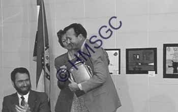 Accession Number:1992-232.204 Accession Date: Condition:good Location:Springfield Public Schools, box 1, folder 204 Keywords:public schools, education, Kraft Area of Origin:Springfield, MO Period:1990 Category:documentary artifact Object:print, photographic Maker: Description/History:A color photo of Jan Wooten and Gary Buzbee's embrace as education board officers change at Kraft Administrative Center. News-Leader Photo Information: