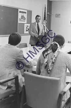 Accession Number:1992-232.328 Accession Date: Condition:good Location:Springfield Public Schools, box 1, folder 310 Keywords:public schools, education, Kraft Area of Origin:Springfield, MO Period:1978 Category:documentary artifact Object:print, photographic Maker: Description/History:A black and white photo of board listens to teacher association representative about salary proposals. News-Leader Photo Information: