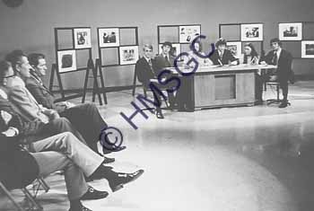 A photo of monthy TV program featuring student interviewers.