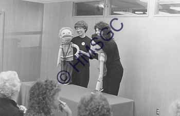 Accession Number:1992-232.769 Accession Date: Condition:good Location:Springfield Public Schools, box 2, folder 246 Keywords:public schools, education, Kraft, puppet, Junior League Area of Origin:Springfield, MO Period:1985 Category:documentary artifact Object:print, photographic Maker: Description/History:A photo of puppet show which helps children deal with disablilties done by Junior League. News-Leader Photo Information: