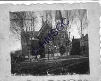 | Accession Number:1992-30 Accession Date: Condition:fair Location:Archives, Photographic Coll., Churches, Box 1, F11 Keywords:Church, First Baptist Church, Baptist churches, South Avenue Area of Origin:Springfield, MO Period:ca 1890 Category:Documentary artifact Object:Print, Photographic Maker:uk Description/History:Black and white photogtaph of First Baptist Church, Springfield, Missouri. Brick building with limestone foundation. View of front. Large stained glass window in center with round windows above it in the gable. Entry is at the right under the steeple and appears to have a wrought iron gate across it. Part of the street is paved with bricks and the street car tracks may divide in front of church. A man is walking on sidewalk. Measurements/Size: 3 1/4" x 4 1/4". Material/Color: Emulsion on paper affixed to cardboard, sepia tone. Emulsion peeling off paper. Machine made. News-Leader Photo Information: |