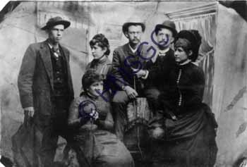 | Accession Number:1992-56-30-30 Accession Date: Condition:good Location:Archives, Campbell - McCammon Coll. B. 7, F. 30 Keywords:Owen, Campbell, McCammon, family picture, fashion Area of Origin:Springfield, MO Period:Ca 1885 Category:Documentary Artifact Object:Print, photographic Maker:UK Description/History:Black and white photo of an original tintype of members of the Owen family. Left to right: Felix Owen, Sarah Campbell Owen, Mary Frances Owen Bryan, unidentified man, unidentified man, Lucy Owen McCammon. News-Leader Photo Information: |