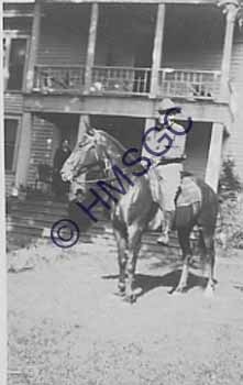 | Accession Number:1992-56-30-68 Accession Date: Condition:fair Location:archives,Campbell-McCammon Coll.,box 11,folder 4 Keywords:Campbell, McCammon, house, horse Area of Origin:Springfield, MO Period:ca 1917 Category:documentary artifact Object:print, photographic Maker:uk Description/History:Black and white photo of a young man on horseback, dressed in a World War I uniform, photographed in front of the Campbell-McCammon house. Probably a member of the McCammon family. News-Leader Photo Information: |