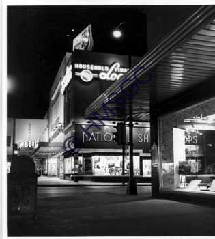 | Accession Number:1994-146 Accession Date: Condition:fair Location:archives,photo coll.,public square,box 2,folder 39 Keywords:public square, Heer's, College St., National Shirt Shops, Woolworths, Newberrys, Household Finance, night lights, streetlights, stoplights Area of Origin:Springfield, Mo. Period:Ca 1960 Category:Documentary Artifact Object:Print, photographic Maker:Raymond Kennon Description/History:Black and white photo of the southwest corner of the Public Square,looking south across College St. Heers, College Street, National Shirt Shop, Woolworths, Newberrys, and Household Finance are visible. News-Leader Photo Information: |
