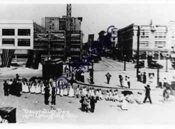 | Accession Number:1994-98 Accession Date: Condition:fair Location:Archives photo collection, Pub Sq, Box 1 folder 45 Keywords:Public Square, Decoration Day, parade, street car, St. Louis Street, Holland Building, transportation, buggy, automobiles Area of Origin:Springfield, MO Period:1914 Category:Documentary Artifact Object:Print, photographic Maker:uk Description/History:Black and white photo of the Springfield Public Square. A Decoration Day parade is in progress. A street car navagates the "pie". St. Louis street in right background. Holland Building on corner of St. Louis Street is under construction. News-Leader Photo Information: |
