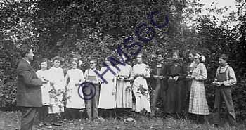 Accession Number:1995-20.21 Accession Date: Condition:fair Location:Whitlock, box 6, folder 21 Keywords:Bishop, Whitlock, school, apples, agriculture, class Area of Origin:uk Period:ca. 1915 Category:documentary artifact Object:print, photographic Maker:uk Description/History:A black and white photo of an agriculture class receiving a lesson on apple diseases. News-Leader Photo Information:
