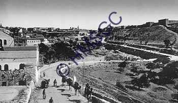 A color postcard of first view of Jerusalem.