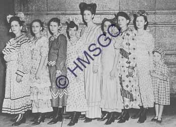 | Accession Number:1996-6-4 Accession Date: Condition:fair Location:Archives, Womens Hist. Coll., Box 2, Folder 4 Keywords:Weaver Brothers & Elviry, entertainment, costumes, vaudeville Area of Origin: Period: Category:Documentary artifact Object:Print photographic Maker: Description/History:Sepia photo of eight women and one girl posing in front of stone wall. They are dressed in costume. Woman on left likely Elviry of the Weaver Brothers & Elviry comedy group. News-Leader Photo Information: |