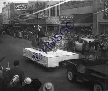 | Accession Number:1997-295 Accession Date: Condition:fair Location:Archives, Photograph Coll., Events, B1, F44 Keywords:Christmas parade; Systematic Savings and Loan; Glasgow's Dry Goods; Hopper Beauty Academy, Hoover Music, Hocklander Jewelry; South Ave. Area of Origin:Springfield, Missouri Period:ca 1950 Category:Documentary Artifact Object:Print, photographic Maker:Betty Love Description/History:Springfield Christmas parade Santa Claus float pulled by a Jeep. Businesses shown: Systematic Savings and Loan; Glasgow's Dry Goods; Hopper Beauty Academy; Hoover Music; Moseley's; Peterson's Dry Goods; Hocklander Jewelry. East side of South Ave. between McDaniel and Walnut. Measurements/Size: 8" x 10". Material/Color: paper, black and white. News-Leader Photo Information: |