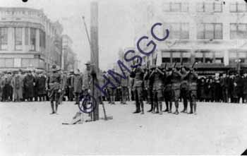|  Accession Number:1998-144  Accession Date:  Condition:fair  Location:Archives photo collection, War, Box 1 folder 53  Keywords:WW I, Armistice Day, Springfield, MO Public Square.  Area of Origin:Springfield, MO  Period: 1918  Category:Documentary artifact  Object:Print, photographic  Maker:  Description/History:B & w photo, celebration of Armistice on Springfield public square.  Soldiers firing a salute, crowd of on-lookers in background.  Corner of College St. and public square.  News-Leader Photo Information: |