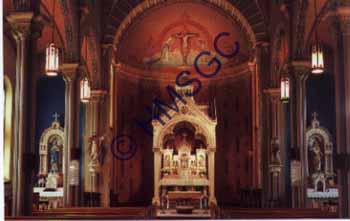| Accession Number:1998-283-5 Accession Date: Condition:fair Location:archives, Church History Coll., Box 1, folder 24 Keywords:St. Joseph, church, Catholic, altar, historic site, ethnic, German-American Area of Origin:Springfield, MO Period:ca 1970 Category:Documentary Artifact Object:postcard Maker:uk Description/History:Color postcard photo of the altar, baldachino and transept at St. Joseph Catholic Church at 1115 N. Campbell Ave. The church was built in 1906 and is staffed by priests from the Conception Benedictine Abbey. News-Leader Photo Information: |