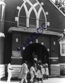 | Accession Number:1998-284-3 Accession Date: Condition:good Location:Archives, Black Hist. Coll., Box 2, Folder 36 Keywords:African American, Gibson Chapel Anniversary, religion, Presbyterian Church, historic site Area of Origin:Springfield MO Period:1988 Category:Documentary Artifact Object:Print, photographic Maker:uk Description/History:Black & white photo of Gibson Chapel Presbyterian Church members walking into the front door of their church for anniversary celebrations in 1988. The church was founded in 1865 and the building in the photo was built in 1891, on the southwest corner of Washington Ave. & Tampa St. (Pine.) News-Leader Photo Information: |