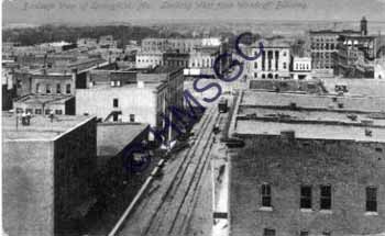 | Accession Number:1998-370 Accession Date: Condition:fair Location:Archives, Photo collection, Streets Box 2, F 16 Keywords:Downtown, "Vasa Cigars", Woolworth & Co., Greene County Courthouse, streetcars, public square, St. Louis St., Woodruff Building Area of Origin:Springfield, MO Period:ca 1911 Category:Documentary artifact Object: postcard Maker:uk Description/History:Sepia tone Postcard of birds eye view of downtown Springfield from the top of the Woodruff Building looking west toward the public square. News-Leader Photo Information: |