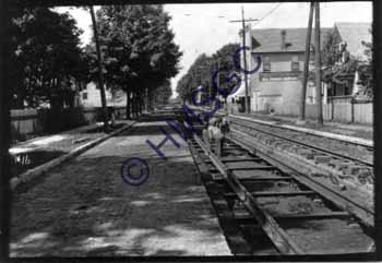 | Accession Number:1998-404 Accession Date: Condition:good Location:Archives, photo collection, Streets Box 3 Folder 7 Keywords:Streetcar tracks, State Street, W.L. Turner Druggist, Grant Ave., transportation Area of Origin:Springfield, MO Period:9/4/1911 Category:Documentary artifact Object:Print, photographic Maker:Unknown Description/History:Black and white photograph of men Laying streetcar tracks on State street west of Grant street. Business shown is "W.L. Turner Druggist" at 717 W. State Street. News-Leader Photo Information: |