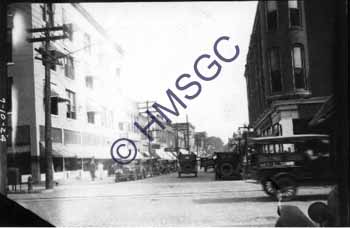 | Accession Number:1998-424 Accession Date: Condition:good Location:Archives, Photo collection, Streets, Box 3 Fldr 30 Keywords:Campbell Ave., College St., transportation, Turners, Busy Bee, Ullmann Hotel Area of Origin:Springfield, MO Period:7/10/1924 Category:Documentary artifact Object:Print, Photographic Maker:Unknown Description/History:Black and white photo of Campbell Avenue looking south from College Street.Many cars in photo. News-Leader Photo Information: |