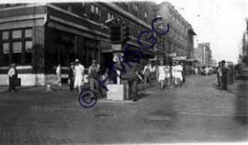 | Accession Number:1998-437 Accession Date: Condition:good Location:Archives, Photo collection, Streets Box 3 Fldr 43 Keywords:Trans-Continental Foot Race, Bunion Derby, St. Louis Street, runners, brick streets, Route 66 Area of Origin:Springfield, MO Period:1928 Category:Documentary artifact Object:Print, photographic Maker:Unknown Description/History:7:00 am snapshot taken from the corner of Jefferson and St. Louis looking west at marathon runners of the Trans-Continental Foot Race, or Bunion Derby. Stoplight in center of intersection with man leaning on it, possibly controlling it. Missouri US 66 sign attached to stoplight. It may be a portable stoplight brought in for the occasion. Springfield-Conway marathon on Route 66. Colonial Hotel on left side of street in photo. News-Leader Photo Information: |