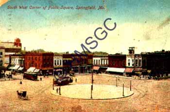 | Accession Number:1998-502 Accession Date: Condition:fair Location:Archives photo collection, PubSq., Box 3 folder 47 Keywords:Public Square, street car, Clement's clock and jewelry co., pie Area of Origin:Springfield, MO Period:1912 Category:Documentary Artifact Object:postcard Maker:made in Germany Description/History:Color post card looking toward the southwest corner of the Springfield Public Square across the "pie". Steet cars and horse drawn vehicles are shown in the photo. News-Leader Photo Information: |