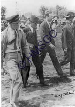 | Accession Number:1998-518-10 Accession Date: Condition:good Location:archives, Woodruff Coll., Box 1, Folder 11 Keywords:John T. Woodruff, Charles A. Lindbergh, Springfield Airport, Franz Alleback, Ozark Airways Area of Origin:Springfield, MO Period:ca 1930 Category:Documentary Artifact Object:Print, photographic Maker:Franz Allebach Description/History:Black and white photo of four men walking across an open area followed by a crowd, probably at Springfield Airport, now Downtown Airport. The two men in the center are (l-r) John Thomas woodruff and Charles A. Lindbergh. Lindbergh visited Springfield with his wife, Anne, ca 1930-35. News-Leader Photo Information: |